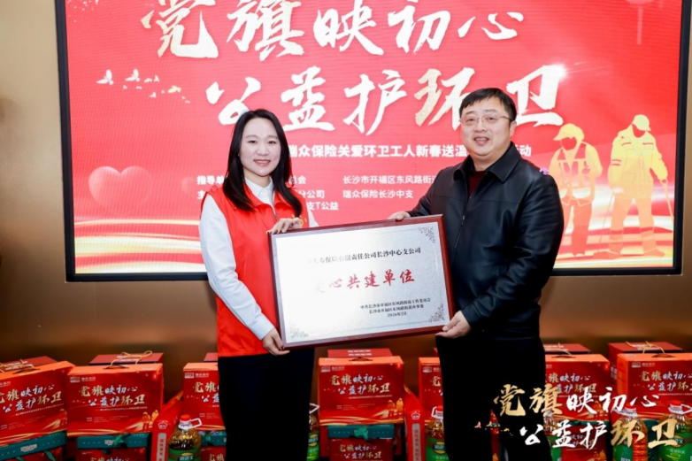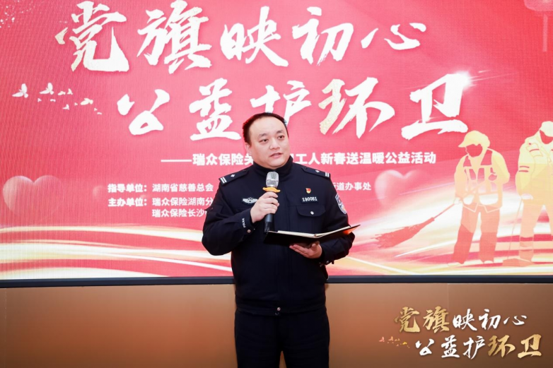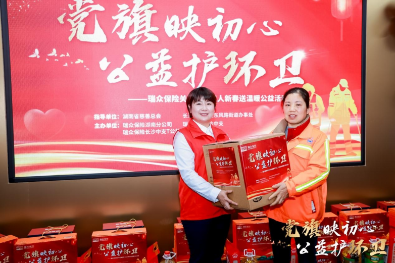 2月9日上午,湖南省慈善总会及相关政府部门联合主办,瑞众保险承办的“党旗映初心 公益护环卫”关爱环卫工人新春活动温情启幕,活动现场为50名辛勤工作在一线的困境环卫工人送上了三万元的新春慰问金与价值两万元的暖心物资,并揭牌成立了面向环卫工人的“爱心驿站”,以实实在在的行动传递社会关爱,践行金融企业的温度与担当。